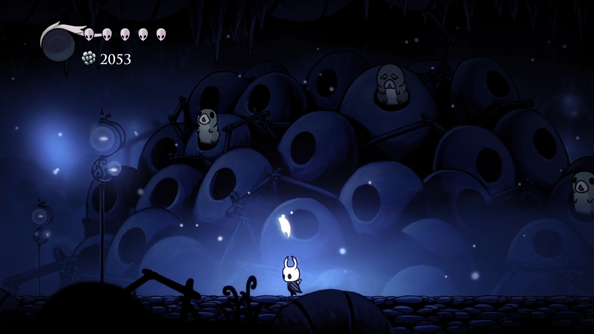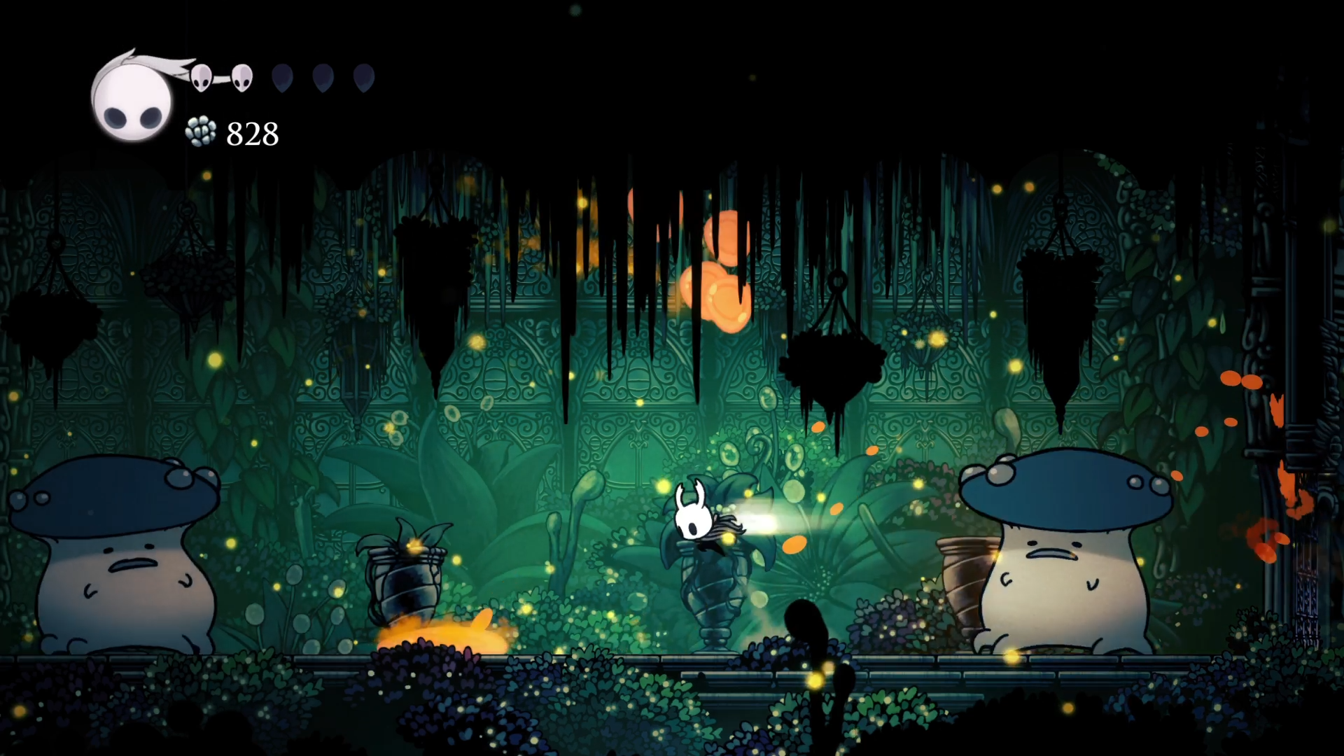 Началась сессия там же, где остановилась прошлая. После боя с Хорнетт я дошел до конца Зеленой тропы, не нашел там ничего интересно и пошел обратно в сторону Забытого перепутья. А по пути зашел в несколько ранее не доступных мест. С помощью навыка "Рывок" смог забрать 2 амулета и спасти одну гусеничку. И вот я в забытом перепутье. В первую очередь зашел в логово Гусеничек. Оказалось, за их спасение дают награду. Помимо щедрого доната Гео, папаша гусеничек выдал мне осколок маски. Судя по всему, нужно собрать 4 таких, чтобы увеличить количество ХП.
