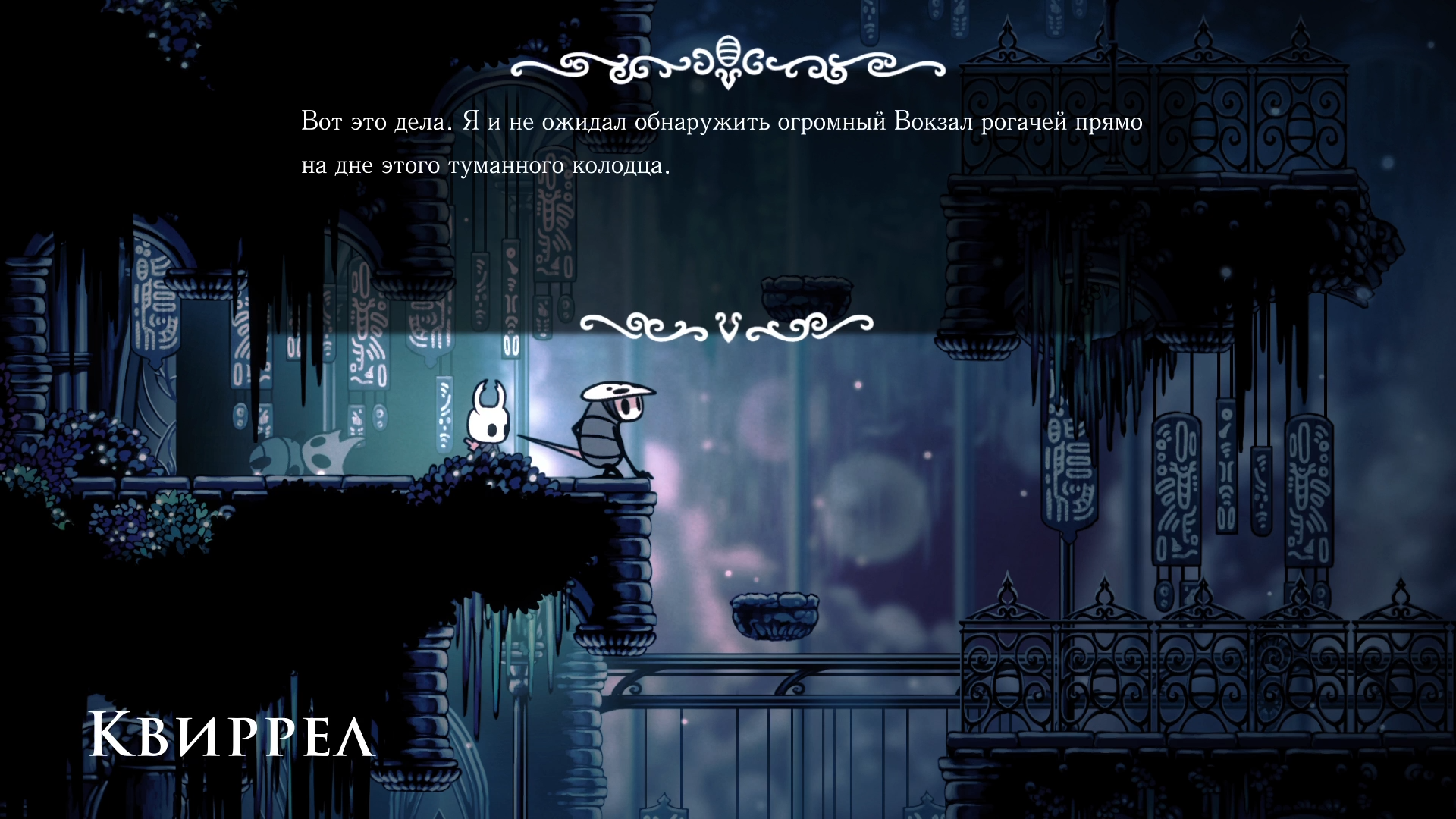 Как только мне в голову пришла мысль, что я уже пипец как далеко забрался, как я наконец-то обнаружил Вокзал рогача! Ура, теперь, в случае чего смогу быстро попасть в эту локацию. Кстати у входа на сам вокзал меня вновь ждал знакомый жук Квиррел, на этот раз он лишь восхищался красотами вокзала.