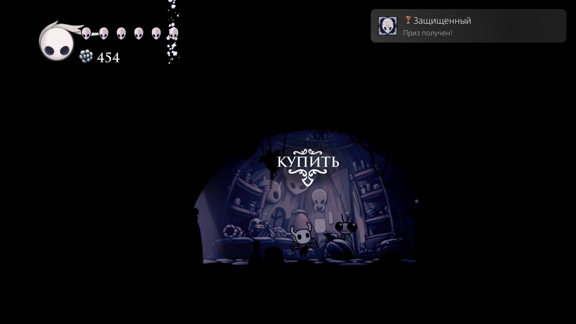 Закончив с Пустошами я решил вернуться в Грязьмут и купить 4й осколок маски у Слая. За это получил не только заслуженное увеличение ХП, но и трофей "Защищенный". Пожалуй, я готов возвращаться к Богомолам.