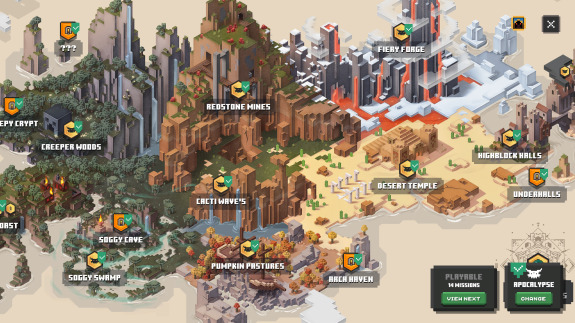 -Ежедневки с крутыми наградами и разными модификаторами, оставляющими вам всего одну жизнь или заменяющими всех монстров на взрывающихся криперов.
